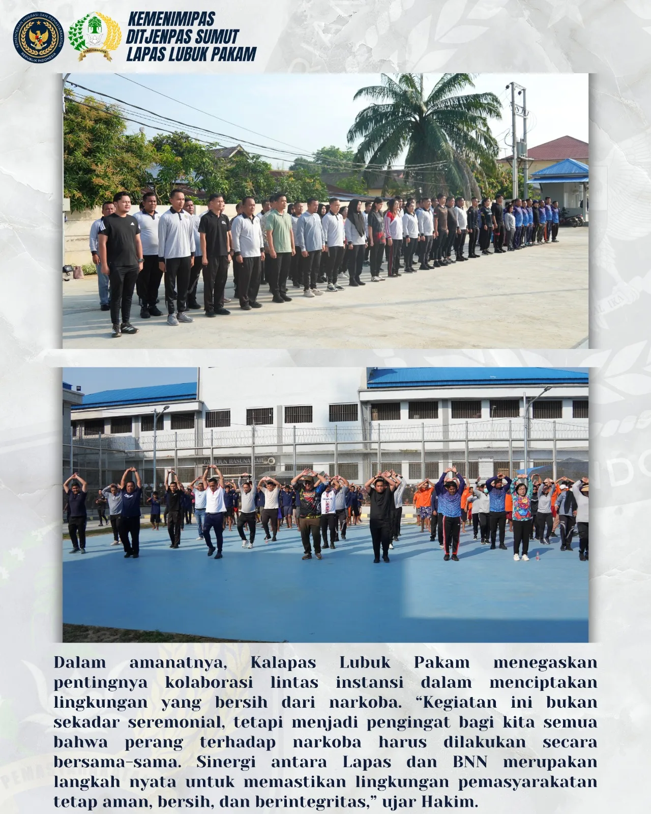 kasnobnews.com, | LUBUK PAKAM – Lapas Kelas IIB Lubuk Pakam memperkuat kolaborasi dengan BNN Kabupaten Deli Serdang melalui rangkaian kegiatan strategis pada Jumat (24/04/2026). Tak hanya menggelar Apel Bersama, kedua instansi ini mencairkan suasana lewat olahraga bersama guna memperkokoh kerja sama tim di lapangan.